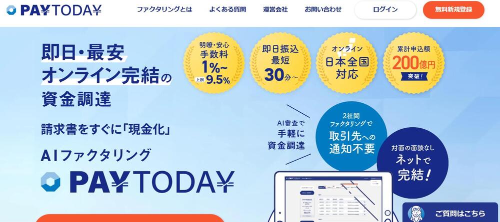 最短3時間での入金と1.5%からという低い手数料が特徴で、中小企業に特化した金融サポートを提供しています。